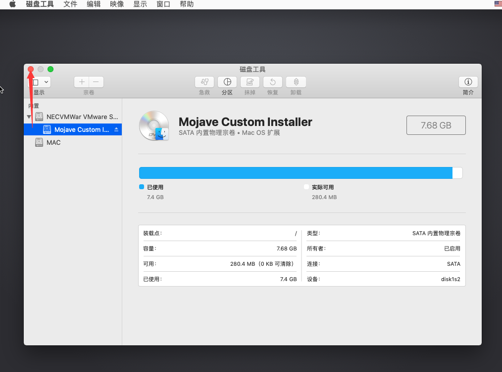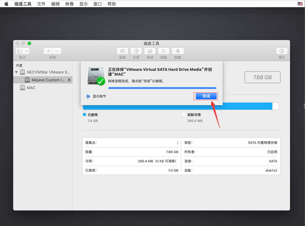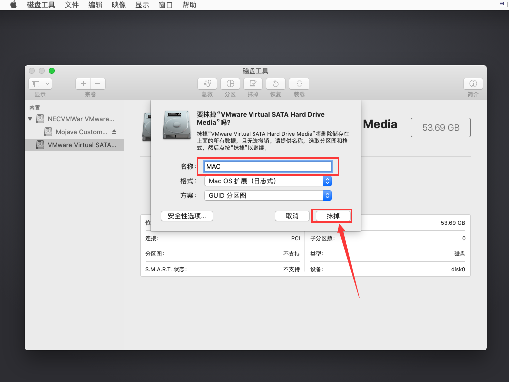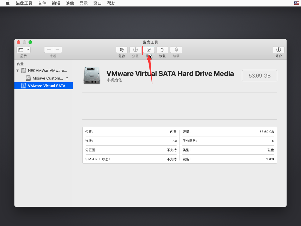 选择下面的【VMware virtual...】然后点击【抹掉】