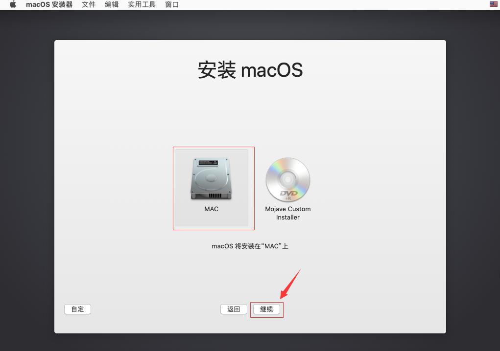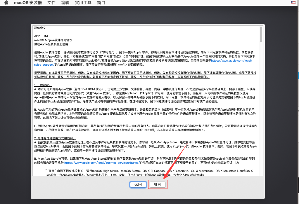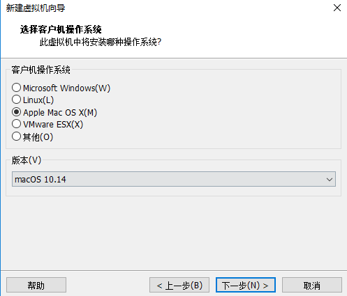 选择【Apple Mac OS X(M)】,版本选择【macOS 10.14】,点击【下一步】