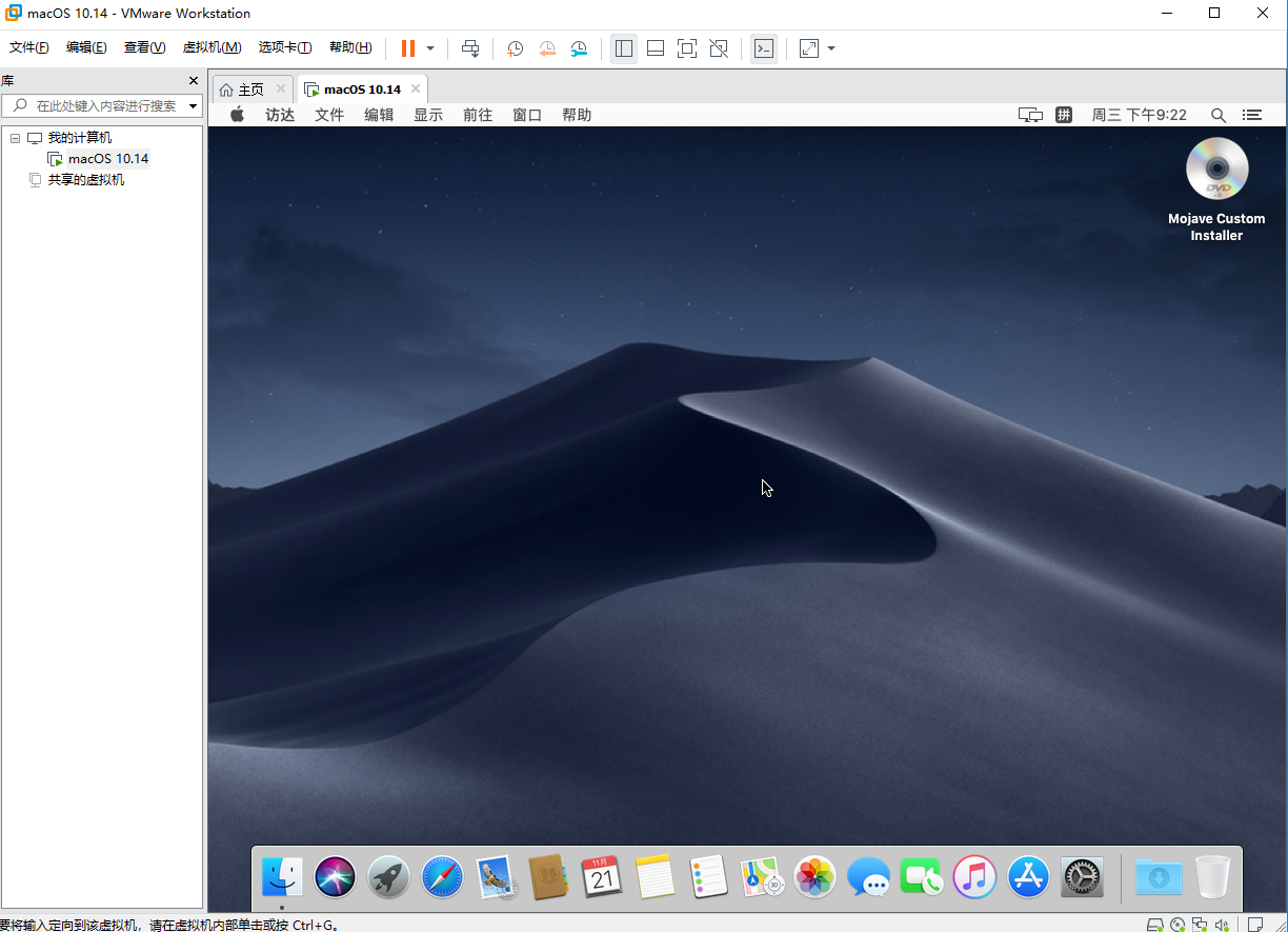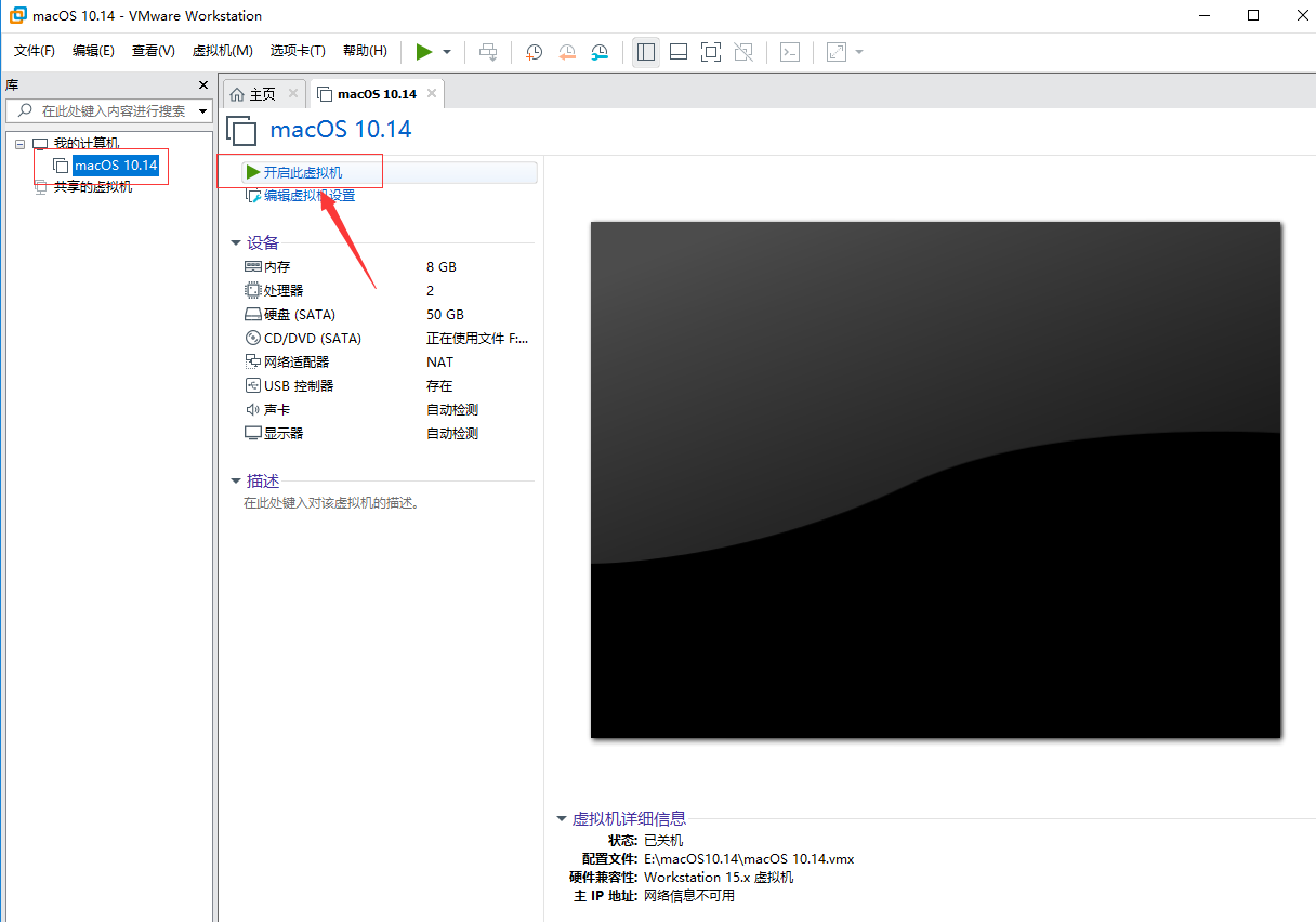 选中【macOS 10.14】,点击【开启此虚拟机】