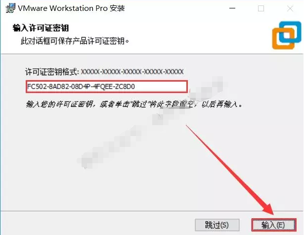 在框中输入“FC502-8AD82-08D4P-4FQEE-ZC8D0”然后点击【输入】