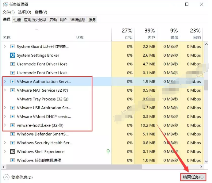 打开任务管理器,所有VM开头的进程都要【结束任务】