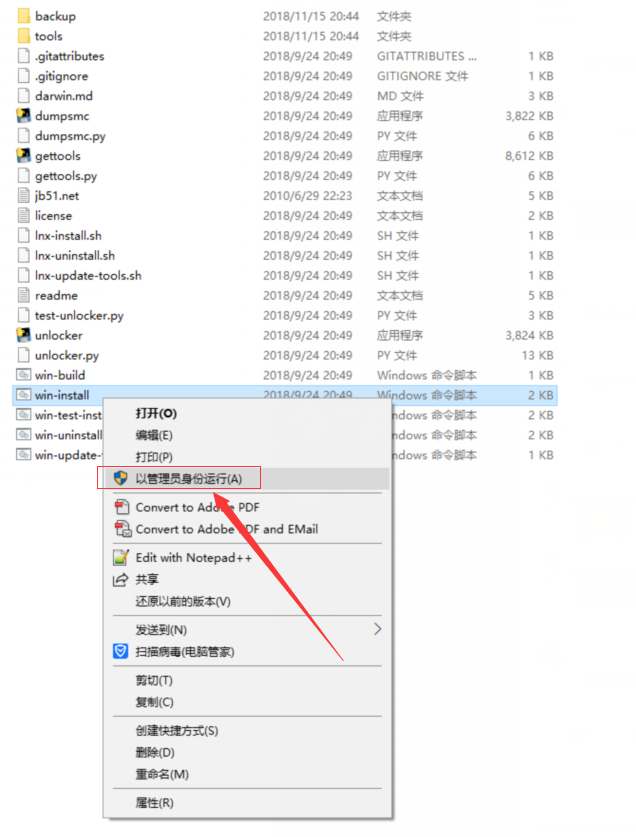 找到【win-install】文件,鼠标右击选择【以管理员身份运行】 运行好会自动关闭