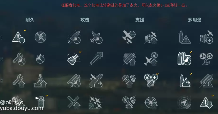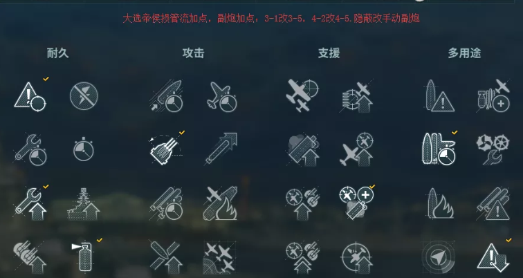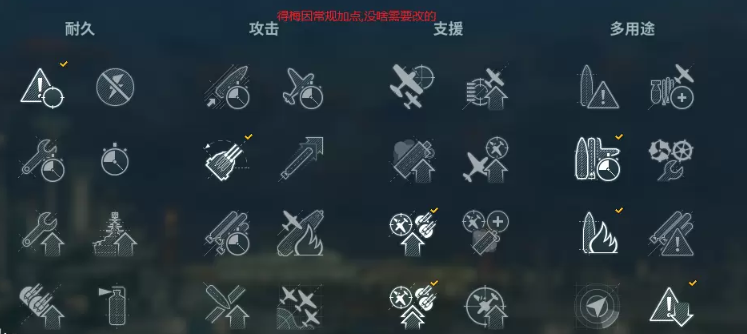 另外:因为我本人不玩苏系驱逐,所以并没有哈巴罗夫斯克合雷暴的加点,我也不玩航母,所以欠缺两条航母的加点。