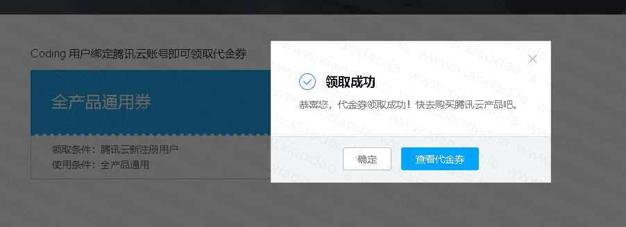打开:https://coding.net/register 注册个帐号,在账户-绑定设置里绑定腾讯云帐号然后领取