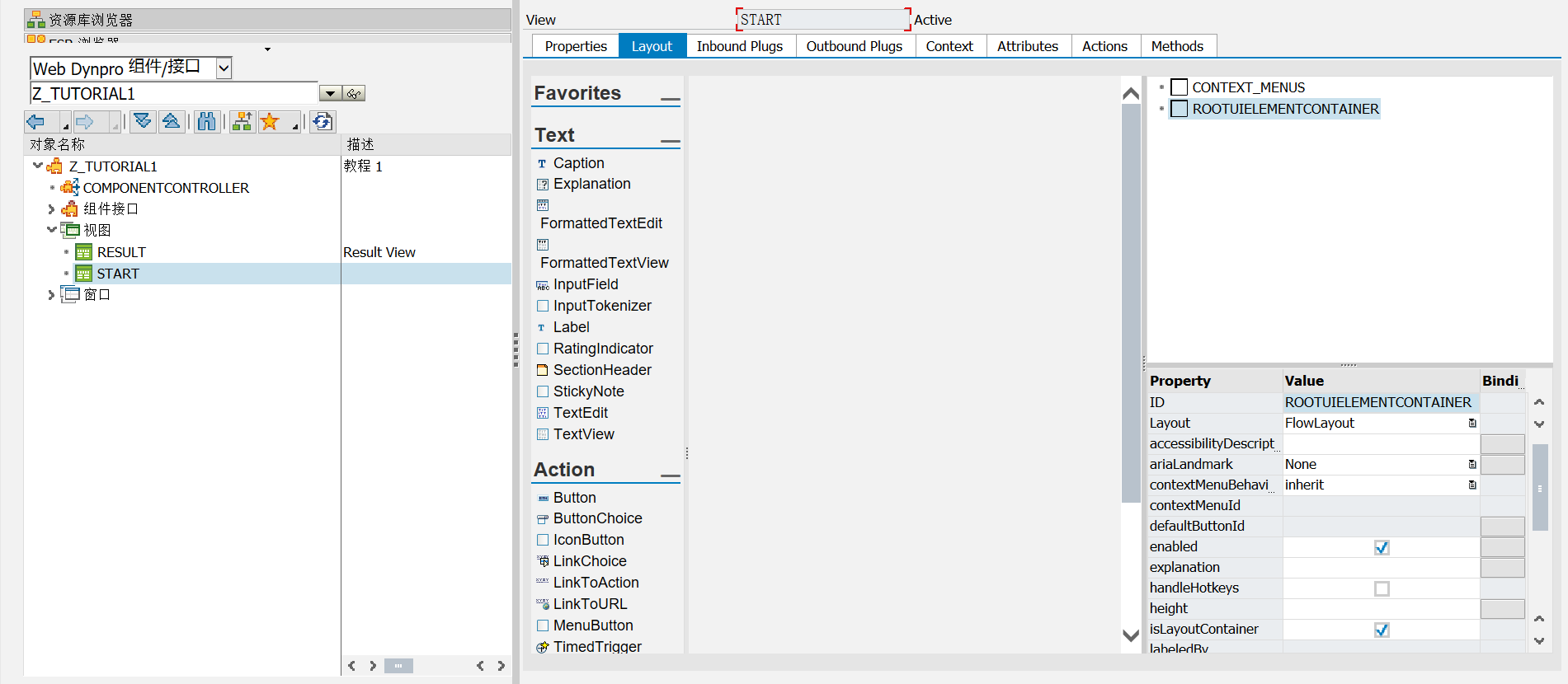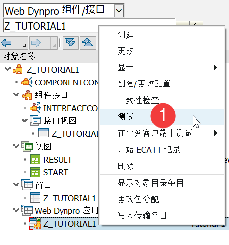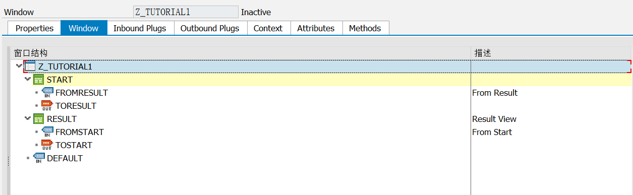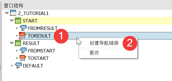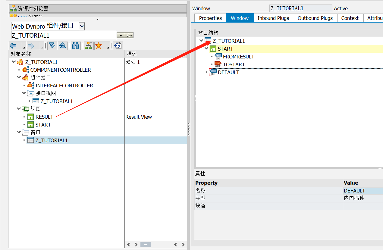 双击窗口下的 Z_TUTORIAL1 ,然后将视图Result拉入Z_TUTORIAL1。