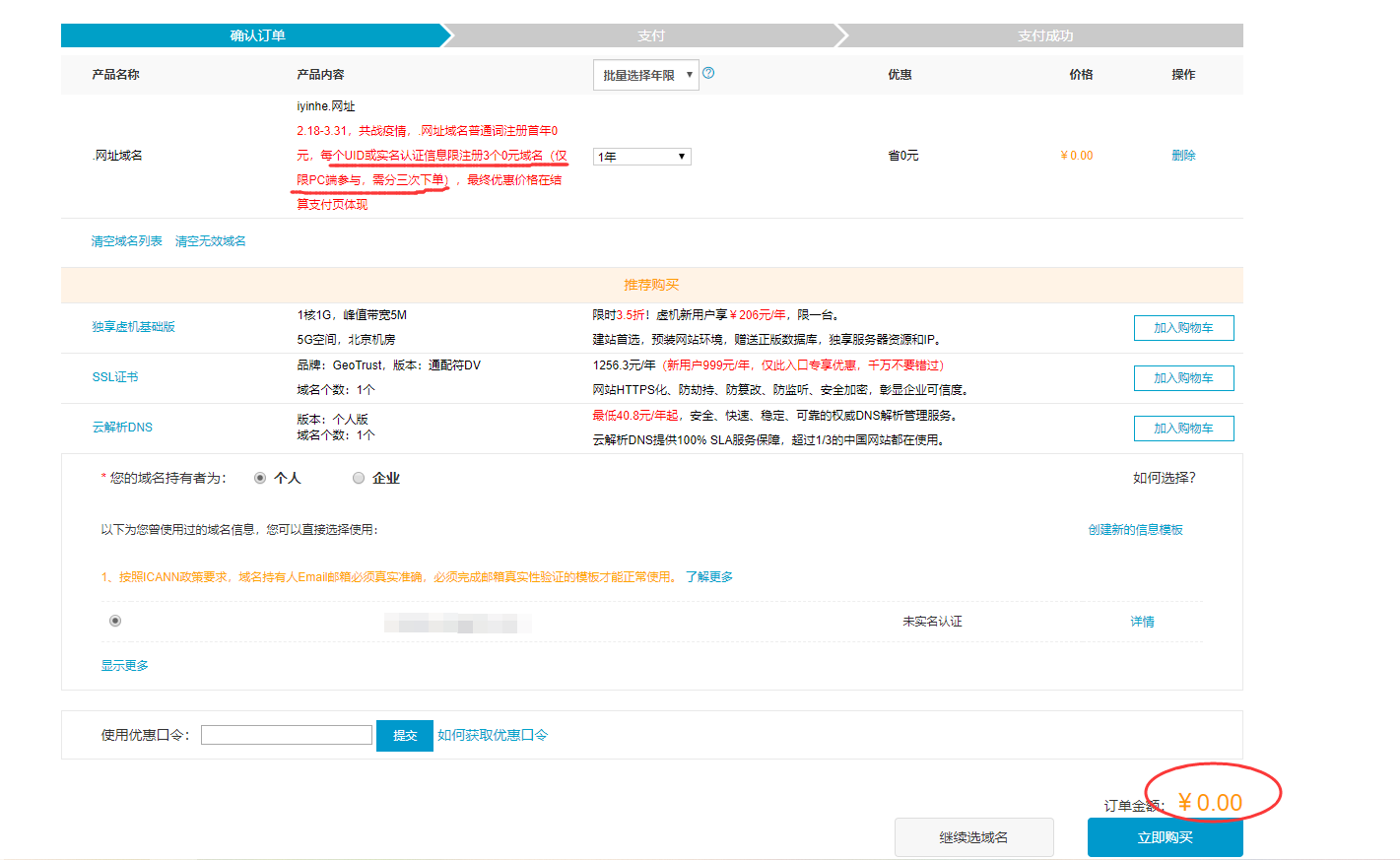 【活动】阿里云免费撸.网址后缀域名 精彩活动 20年2月24日 编辑 银河舰队银河舰队 取消关注 关注 私信 打开:https://wanwang.aliyun.com/domain/searchresult#/?keyword=&suffix=com 筛选.网址后缀域名,然后输入要注册的域名前缀,加入购物车直接0元结算! 活动时间:2020.3.31结束(每个账号可撸3次) 给TA打赏 共{{data.count}}人 人已打赏