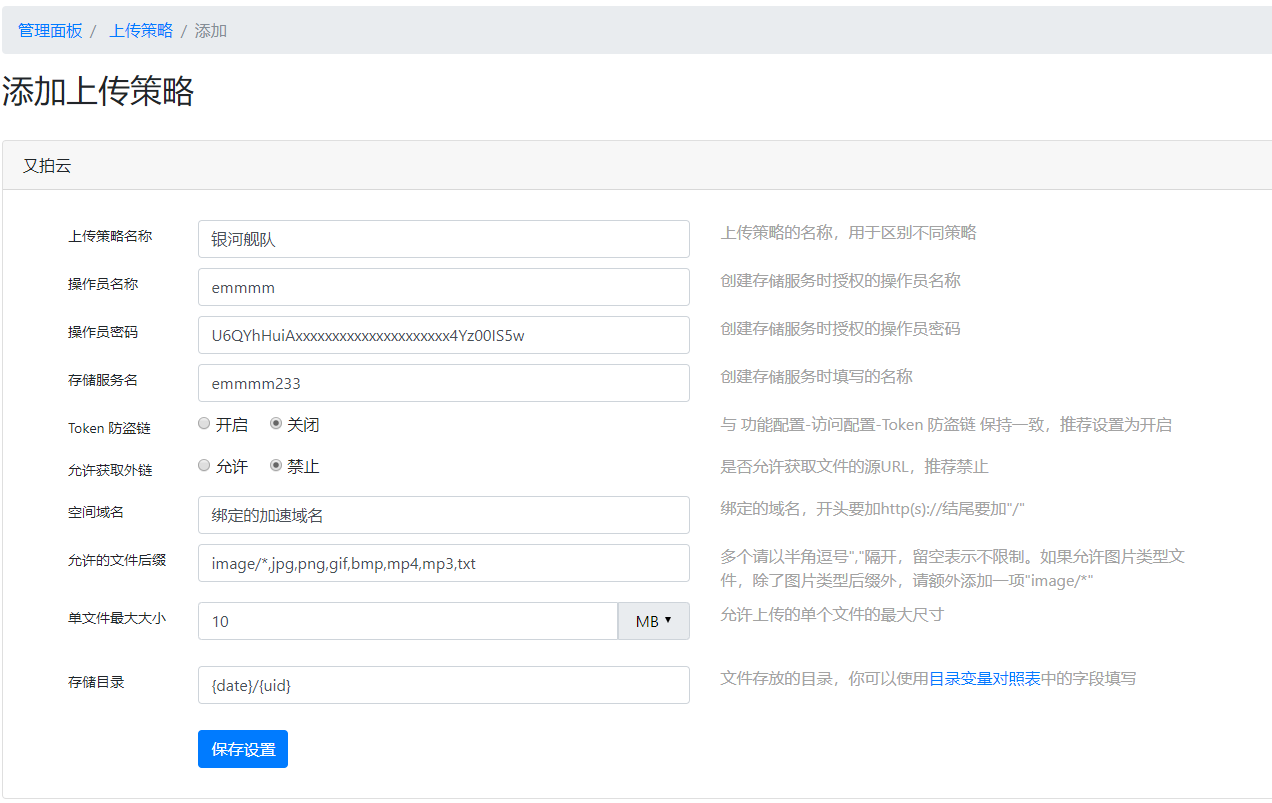 2、填写相应信息(如果仅用于备份,外链地址非必填)