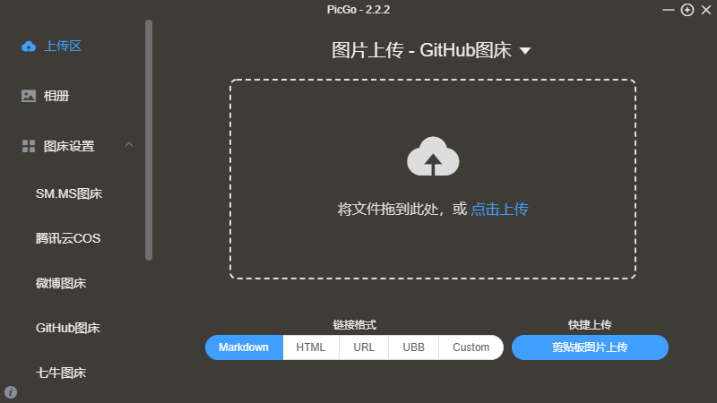 - 日常使用直接拖拽、点击上传、剪贴板上传均可