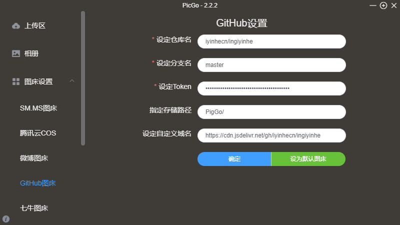 自定义域名+储存路径+上传的图片名的方式生成链接,放到剪贴板上,因为我们要使用 jsDelivr 加速访问,所以可以设置为https://cdn.jsdelivr.net/gh/用户名/图床仓库名,上传完毕后,我们就可以通过https://cdn.jsdelivr.net/gh/用户名/图床仓库名/图片路径加速访问我们的图片了