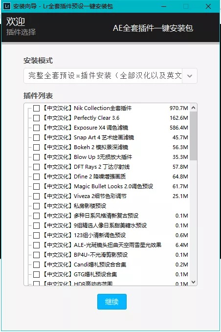 本次分享的插件为AE+PR+PS+LR+C4D一键安装版。