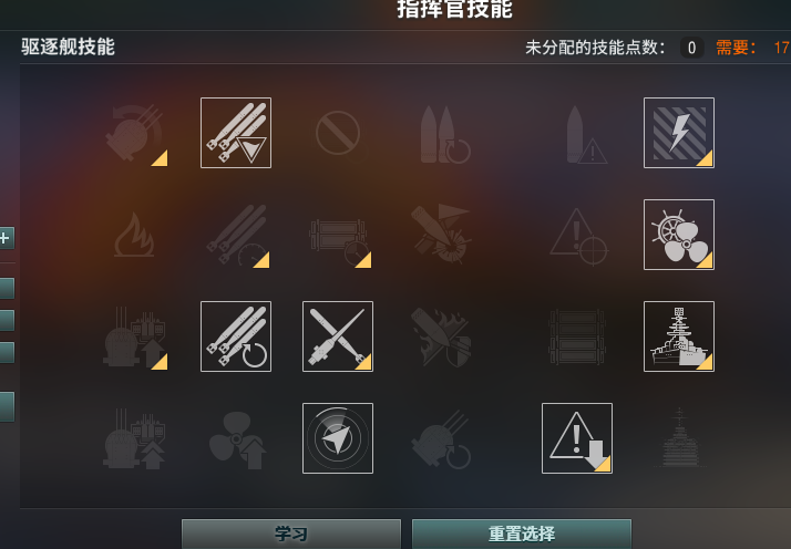 潜行技能个人感觉意义不大,毕竟驱逐其实不差那点航速,反而是缺乏应急的反应手断,不如加强在雷或者炮上。