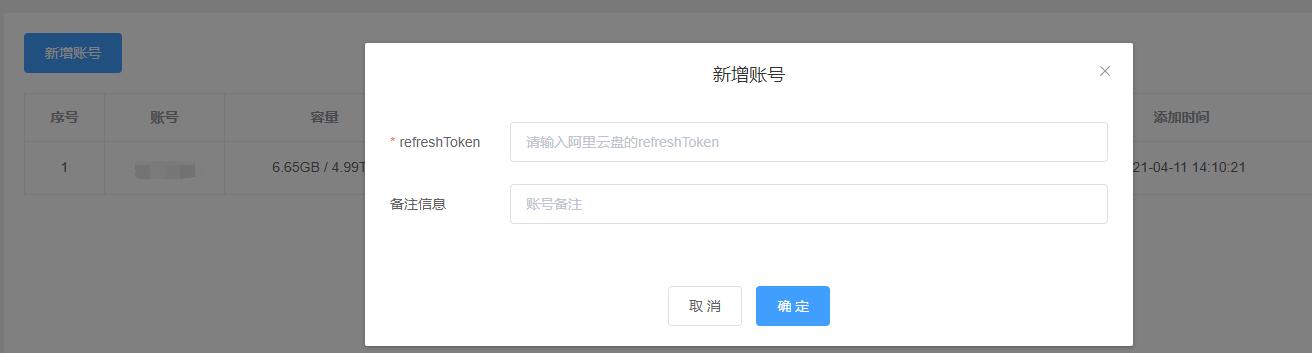 点击新增账号,填入你第一步获取的refresh_token,点击确定即可