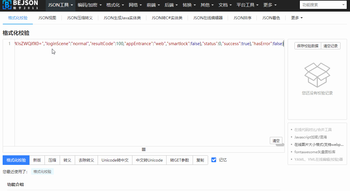 复制了上面的内容后去JSON格式化的网站