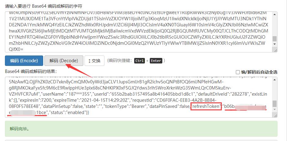 如图,解码后,refresh token的值就是我们要的结果b0xxxxbce那个