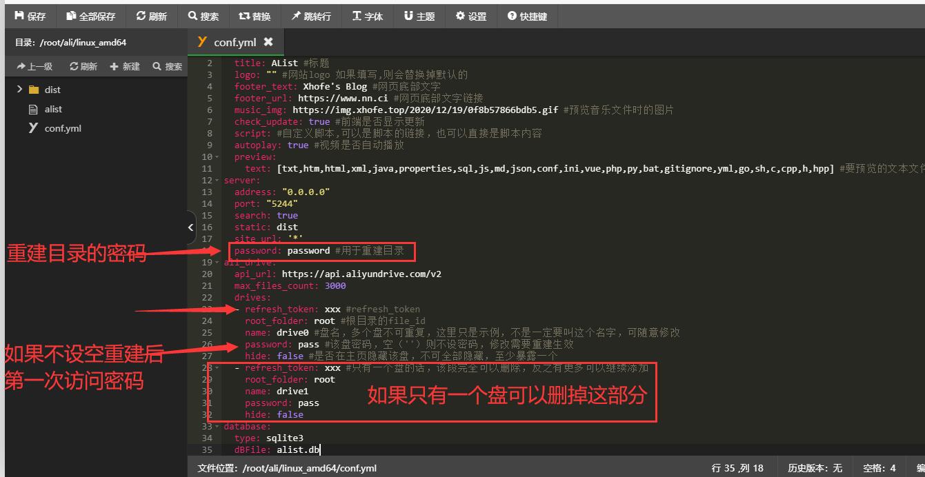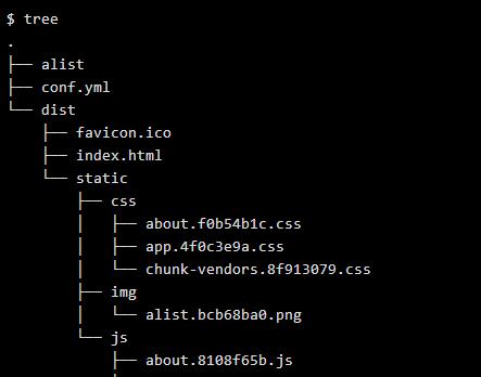 alist、conf.yml和一个文件夹dist: