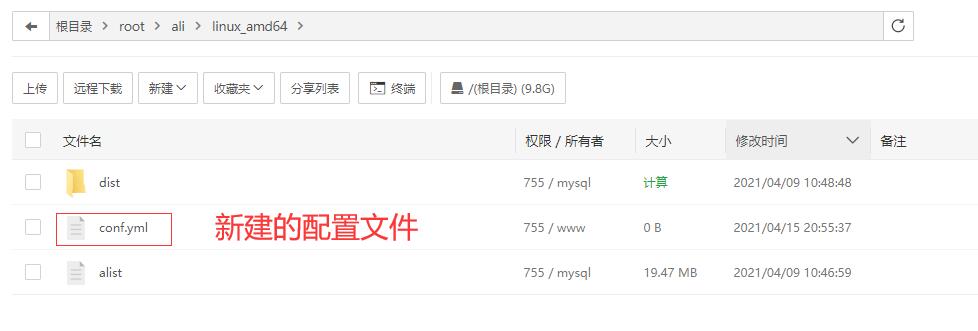 alist同级目录下 - 在同级目录下新建一个配置文件