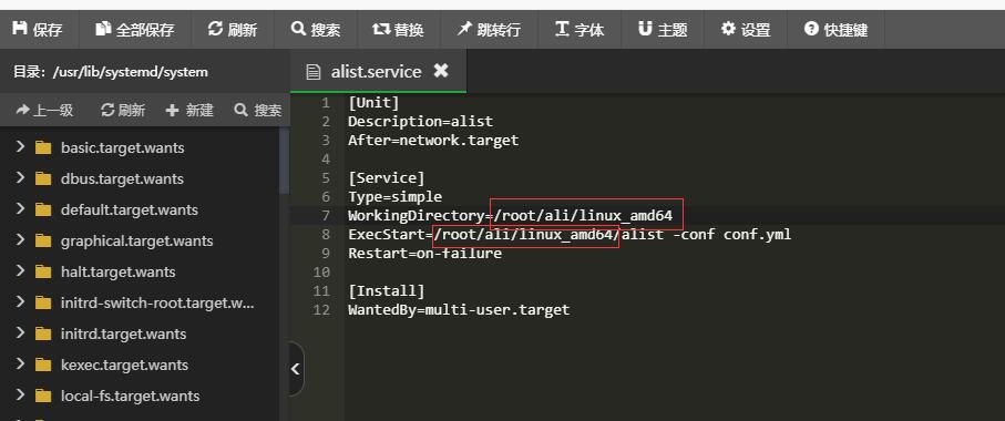 vim /usr/lib/systemd/system/alist.service添加以下内容,(可以在宝塔里直接访问目录/usr/lib/systemd/system然后新建文件alist.service)其中path_alist为alist所在的路径